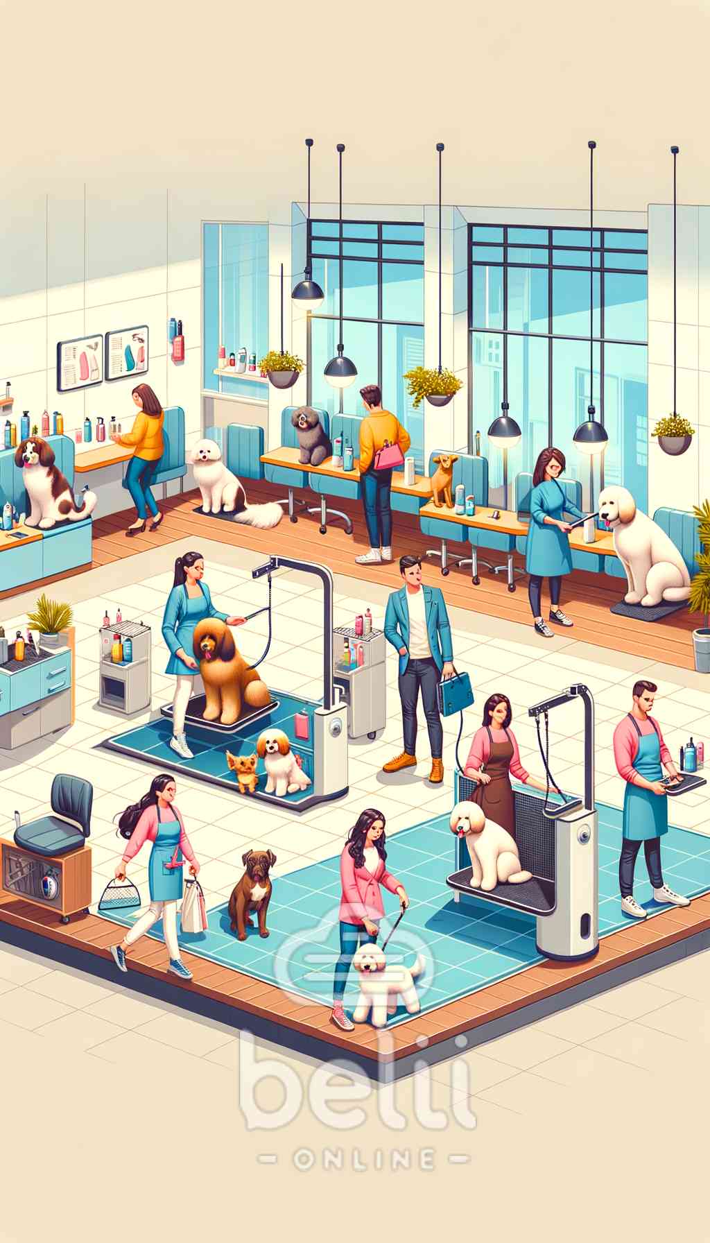 Создай изображение современного груминг салона в городе Пинск, как по-твоему он должен выглядеть, как должно происходить обслуживание клиентов